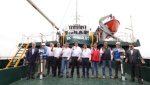 Desde el puerto del Callao, el ministro de la Producción, César Manuel Quispe Luján y el titular del Ministerio del Ambiente, Miguel Ángel Espichán Mariñas participaron en la ceremonia de zarpe del Crucero de Investigación del Calamar Gigante, una iniciativa que refuerza el compromiso del país con la investigación marina y la pesca sostenible. Durante […]