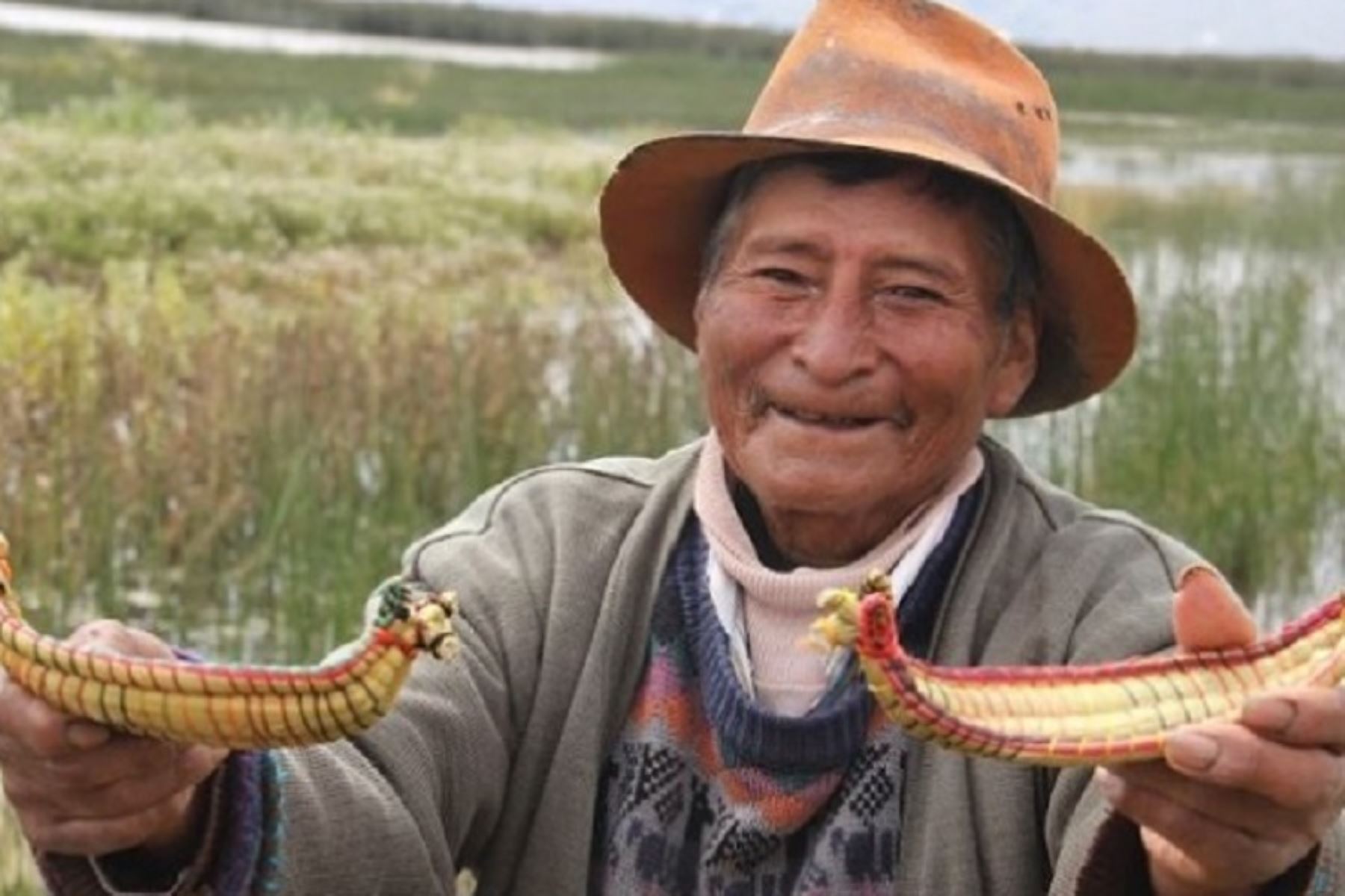 Adulto mayor peruano creador de la flota de totora más pequeña del Titicaca