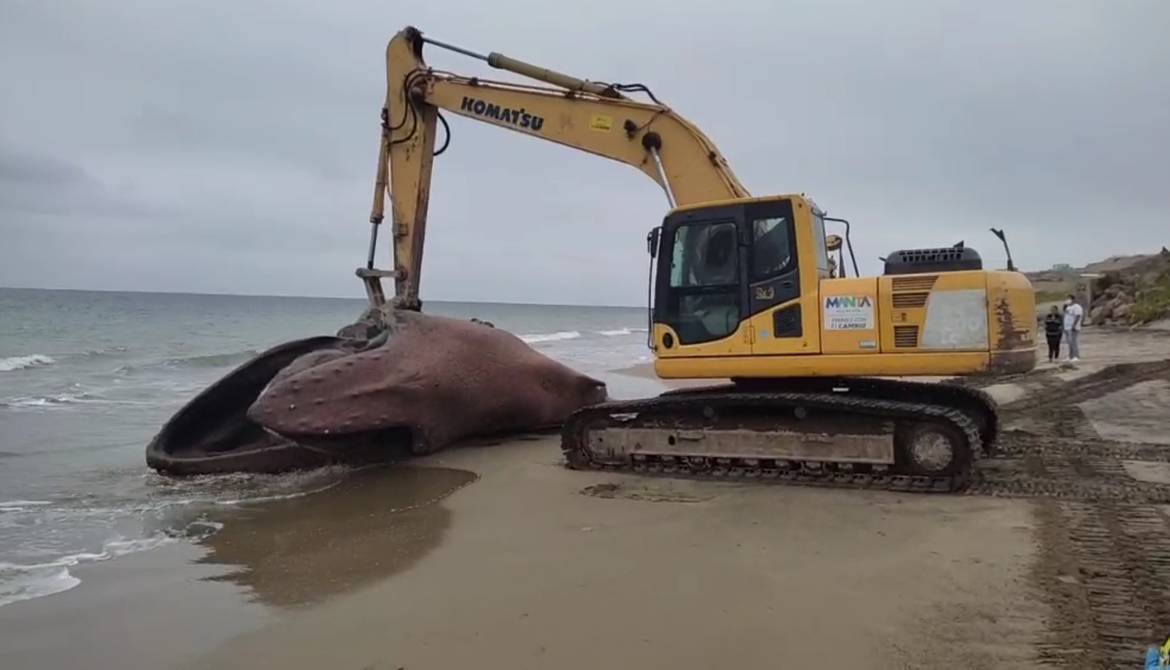 Cerca de las 11:00 de este miércoles, maquinaria municipal procedió a retirar al cetáceo de la costa para ubicarlo en otro sector, donde quedará sepultado.