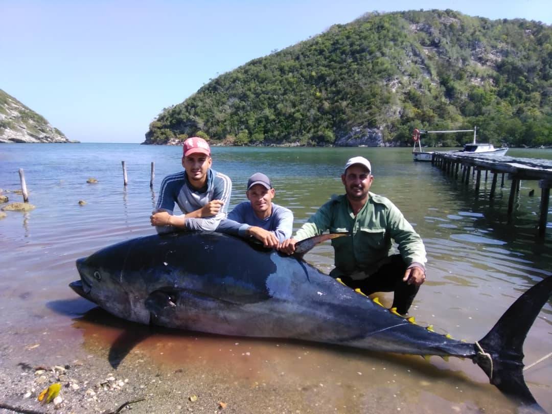 Dos cubanos aseguran haber pescado en cámara un enorme atún de aleta amarilla de unas 710 libras de peso, con un sedal de 120 libras de calibre y usando un chicharro como carnada.