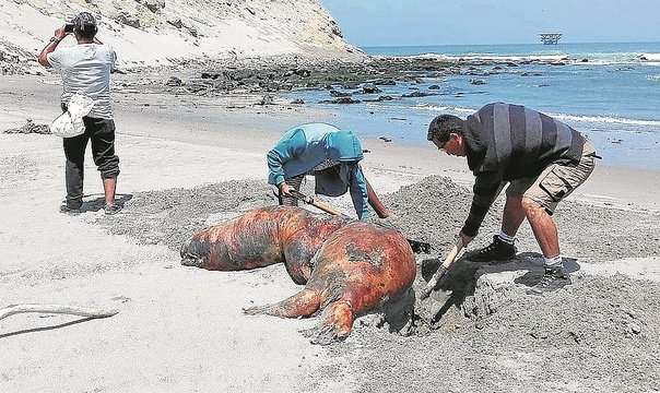 “El año pasado enterramos 70, y hoy han sido 25. Vamos a seguir recorriendo la zona en los próximos días para enterrarlos provisionalmente y evitar que haya alguna enfermedad”, señaló Chapilliquén Cuadra.