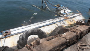Nave de menor escala quedó destrozada tras chocar con lancha industrial siniestrada